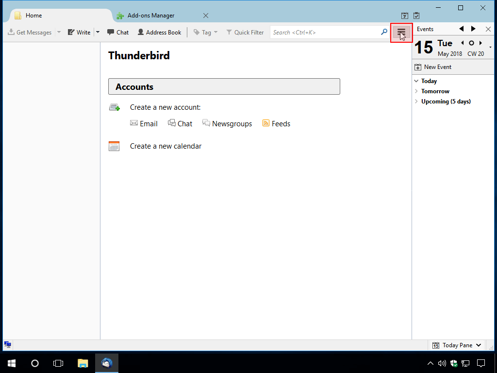 ۱) برنامه Thunderbird را باز کنید و سپس روی منوی اصلی برنامه کلیک کنید.