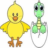 نقاشی جوجه طلایی و دایناسور کوچولو