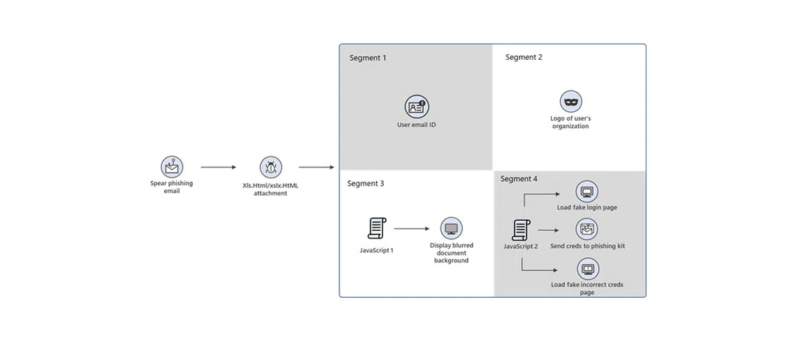براساس گزارشهای منتشر شده، این حملات با ایمیلهایی که در ظاهر فاکتورهای خرید هستند، به قربانیان ارسال میشوند که حاوی یک فایل HTML مخرب هستند. هدف نهایی این کمپین فیشینگ جمعآوری نام کاربری و رمزعبور قربانیان و استفاده از آنها در دیگر حملات عنوان شده است.