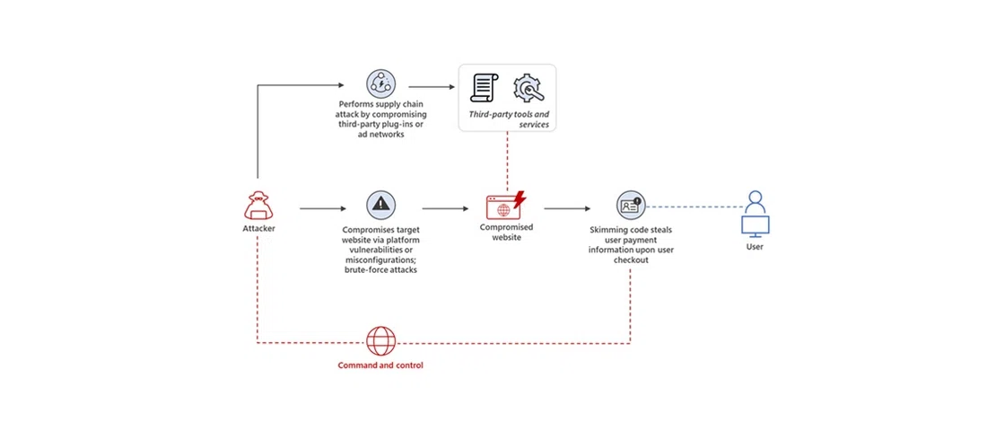 در این حملات از آسیبپذیریهای امنیتی در افزونههای شخص ثالث و دیگر ابزارها برای تزریق کدهای مخرب جاوا اسکریپت به وبسایتهای فروشگاهی استفاده میشود.