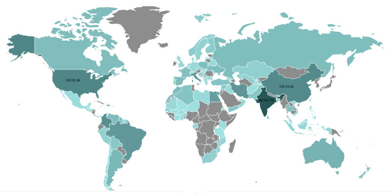 علاوه براین، براساس کارکرد این باتنت و ایجاد شبکه پروکسی برای ارسال هرزنامه از طریق آیپیهای کاربران، محققان نتلب به مستنداتی دست یافتهاند که نشان میدهد این باتنت تاکنون بیش از ۳.۳۷ میلیون روتر در سراسر جهان آلوده کرده است. تصویر زیر، میزان آلودگیها به این باتنت را براساس پراکندگی جغرافیایی نشان میدهد.